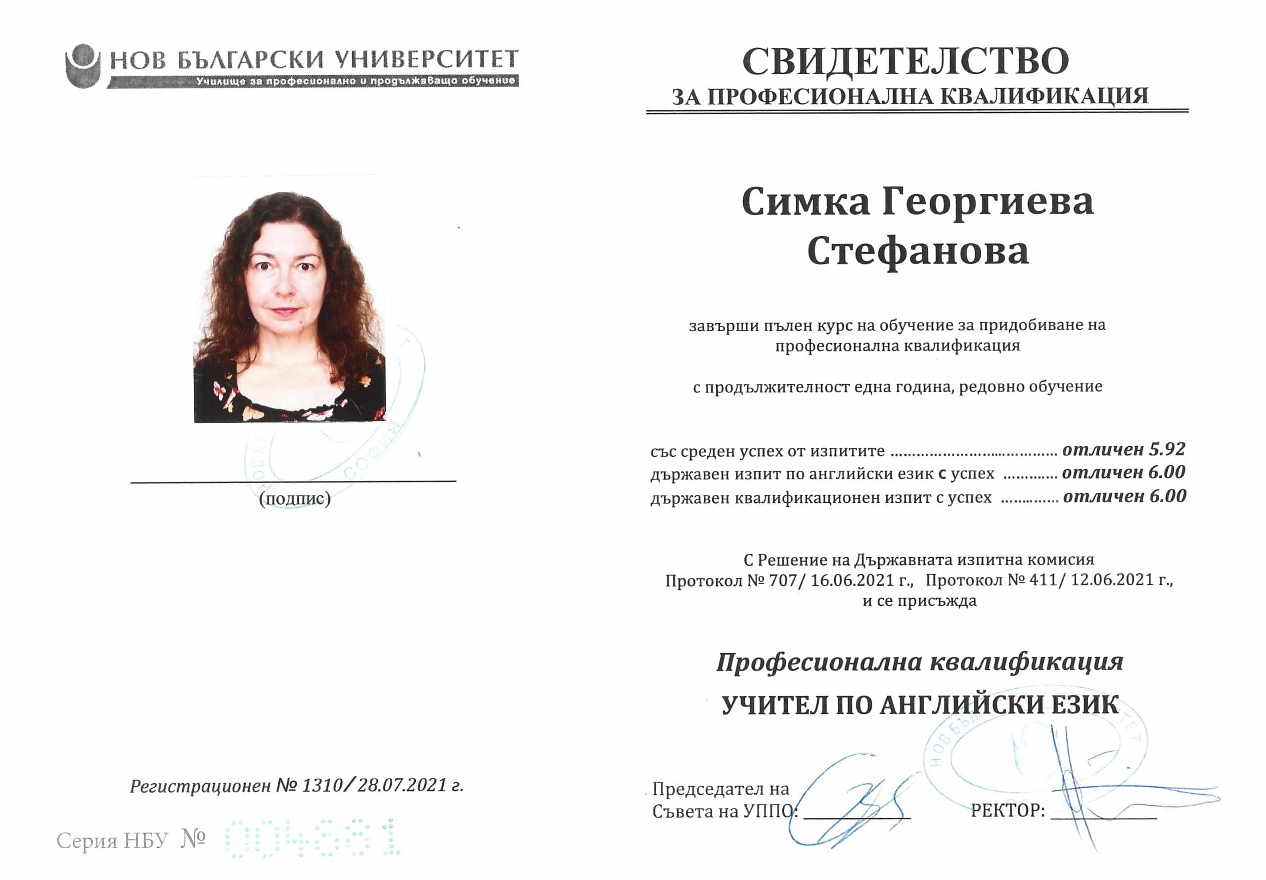 Много професионален учител, със солидна подготовка и голям опит. Тя прави английския език постижим за всеки. С нейните знания и търпение английският не е проблем за никого. Силно препоръчвам.